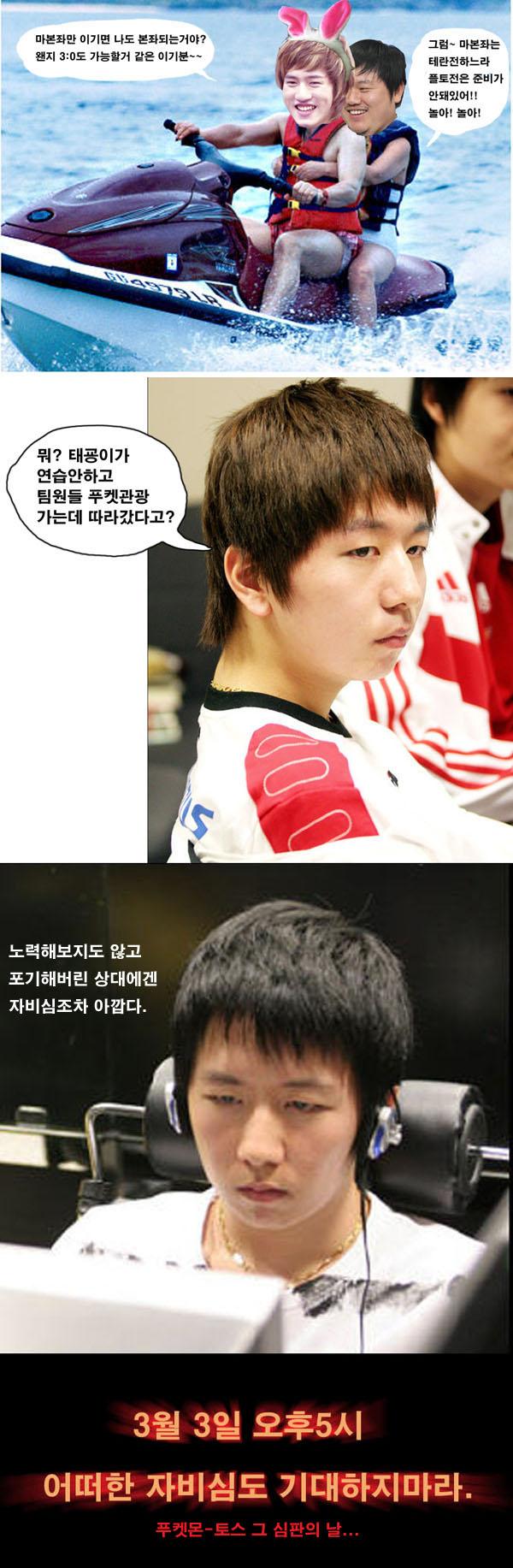 당시 저그 프로게이머 중 최고였던 마재윤과의 결승전이 얼마남지 않은 상황임에도