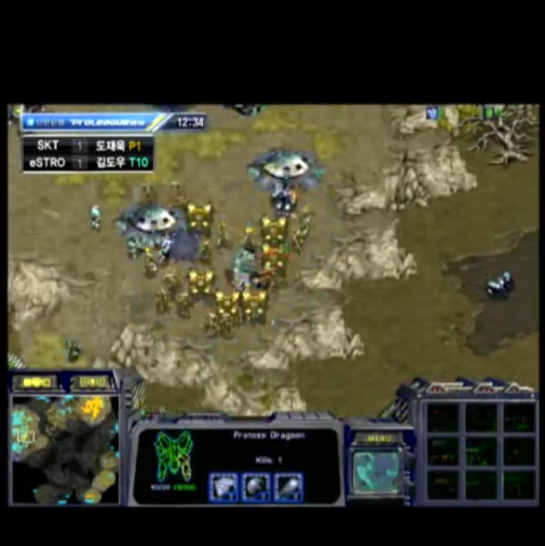 멀티가 커지기 전에 이미 김택용이 리버와 드라군으로 공격한다