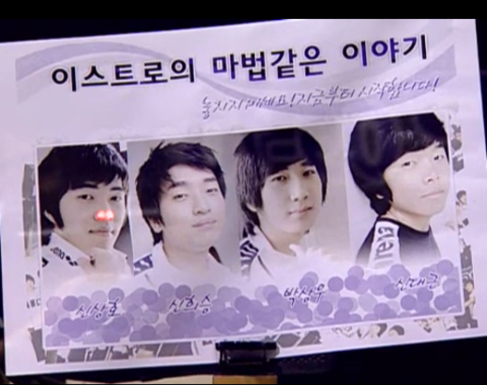 그때 방송국 조명 때문에 신상호의 코가 코피 흘린 것처럼 빛나는 치어풀이 찍혔고