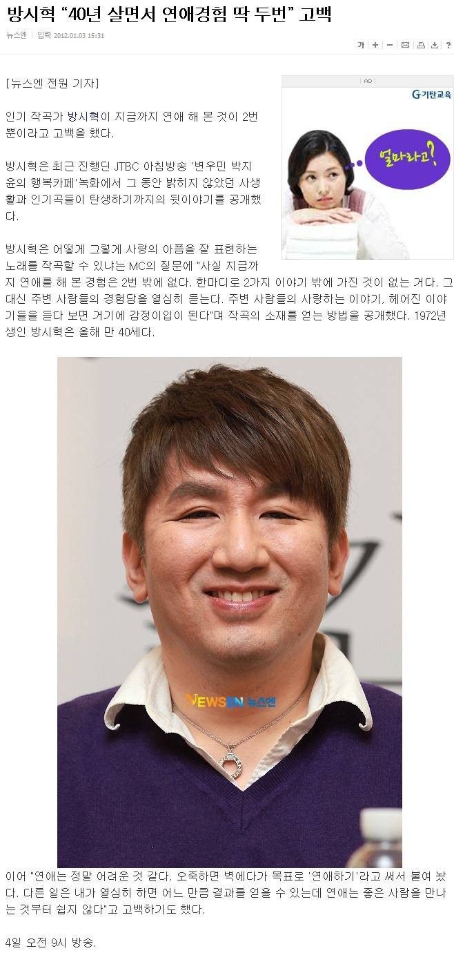 방시혁은 과연 어떤 연애스타일을 가지고 있을까.