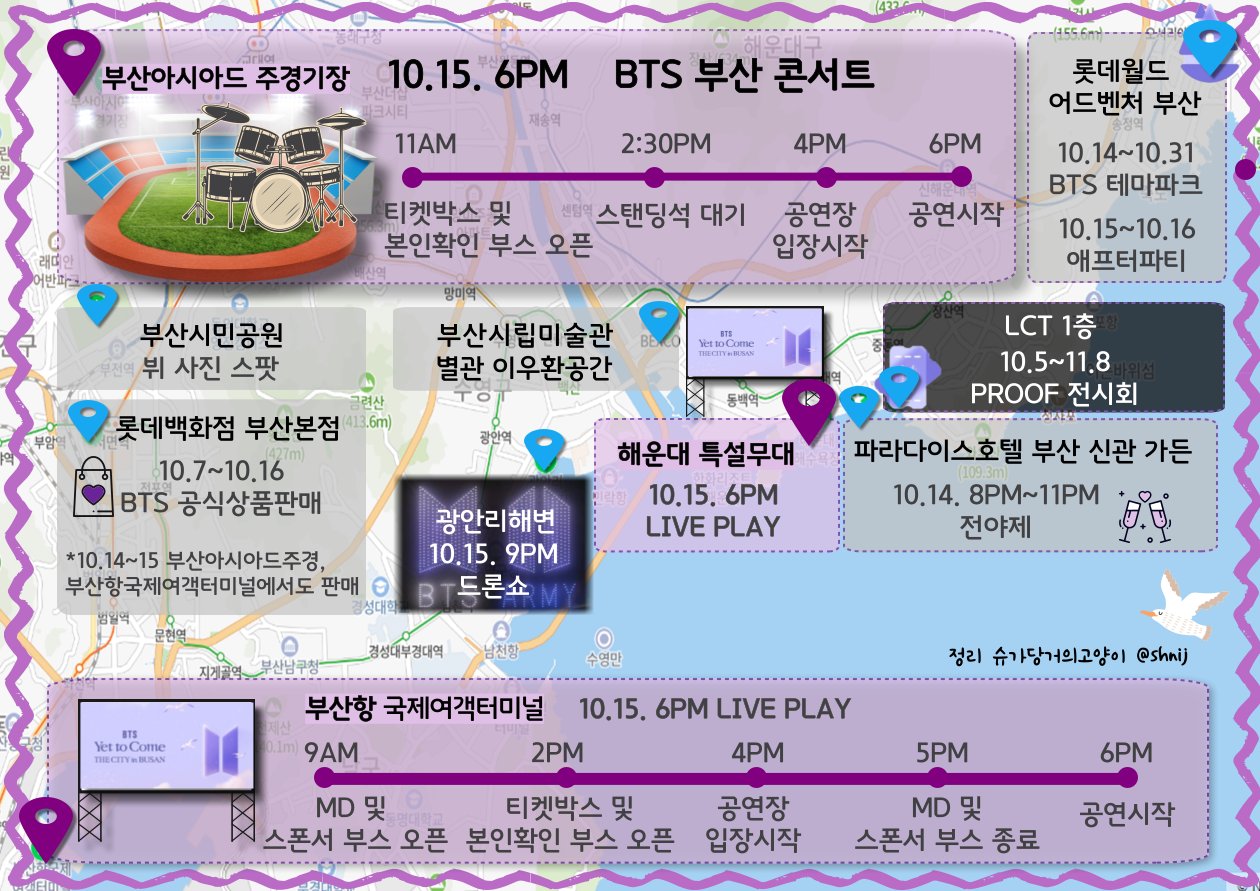 그런데 부산에 갈곳을 정리하던 중 부산이 거의 bts에게 점령 당하지 않았나 생각할 정도로