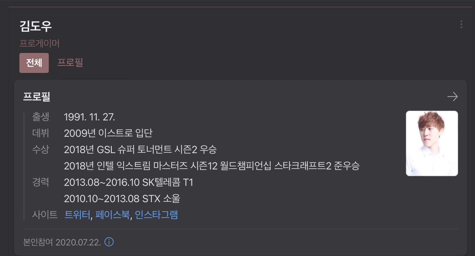 프로게이머 근황이라던가 그런 것을 전혀 모름.