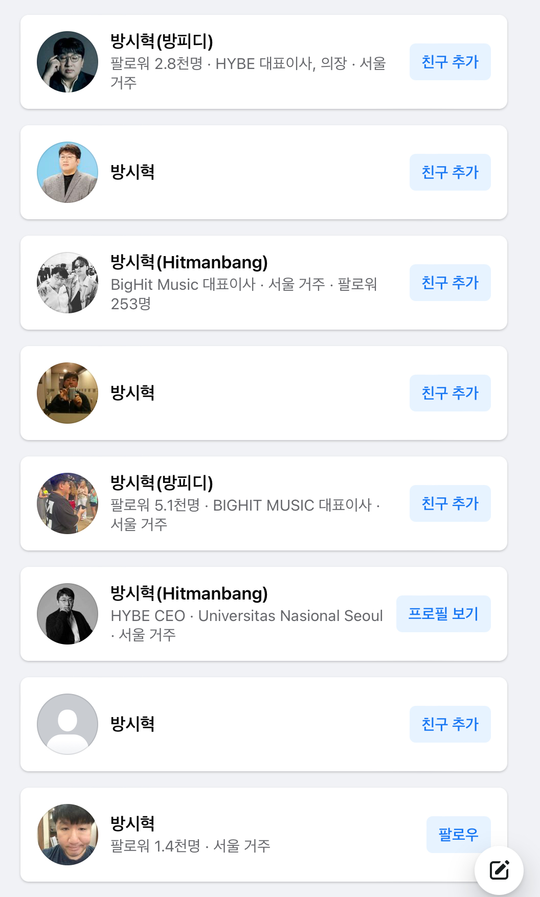 방시혁 진짜 계정을 금방 찾아냈고 그곳에서 보통 보기 힘든
