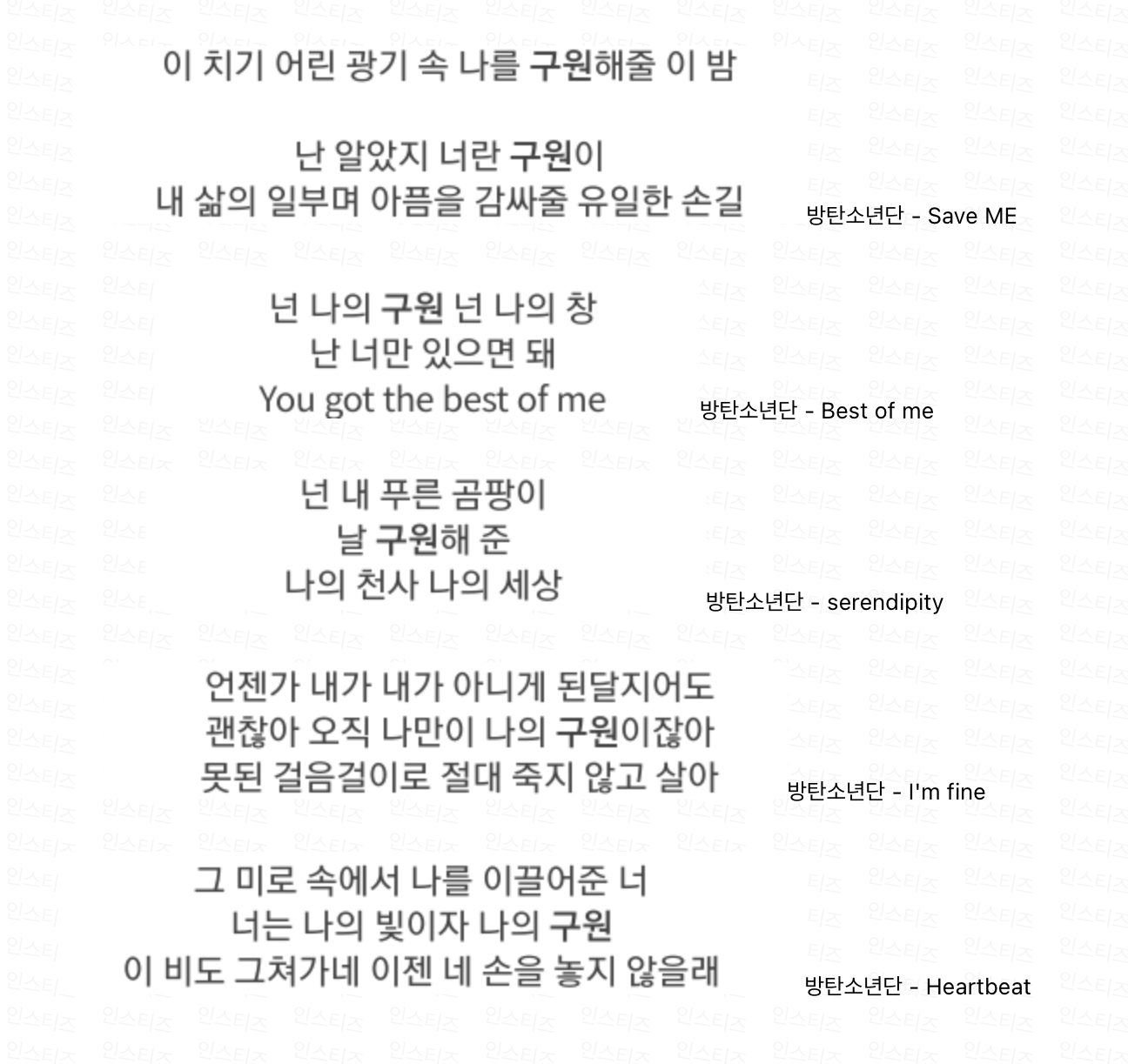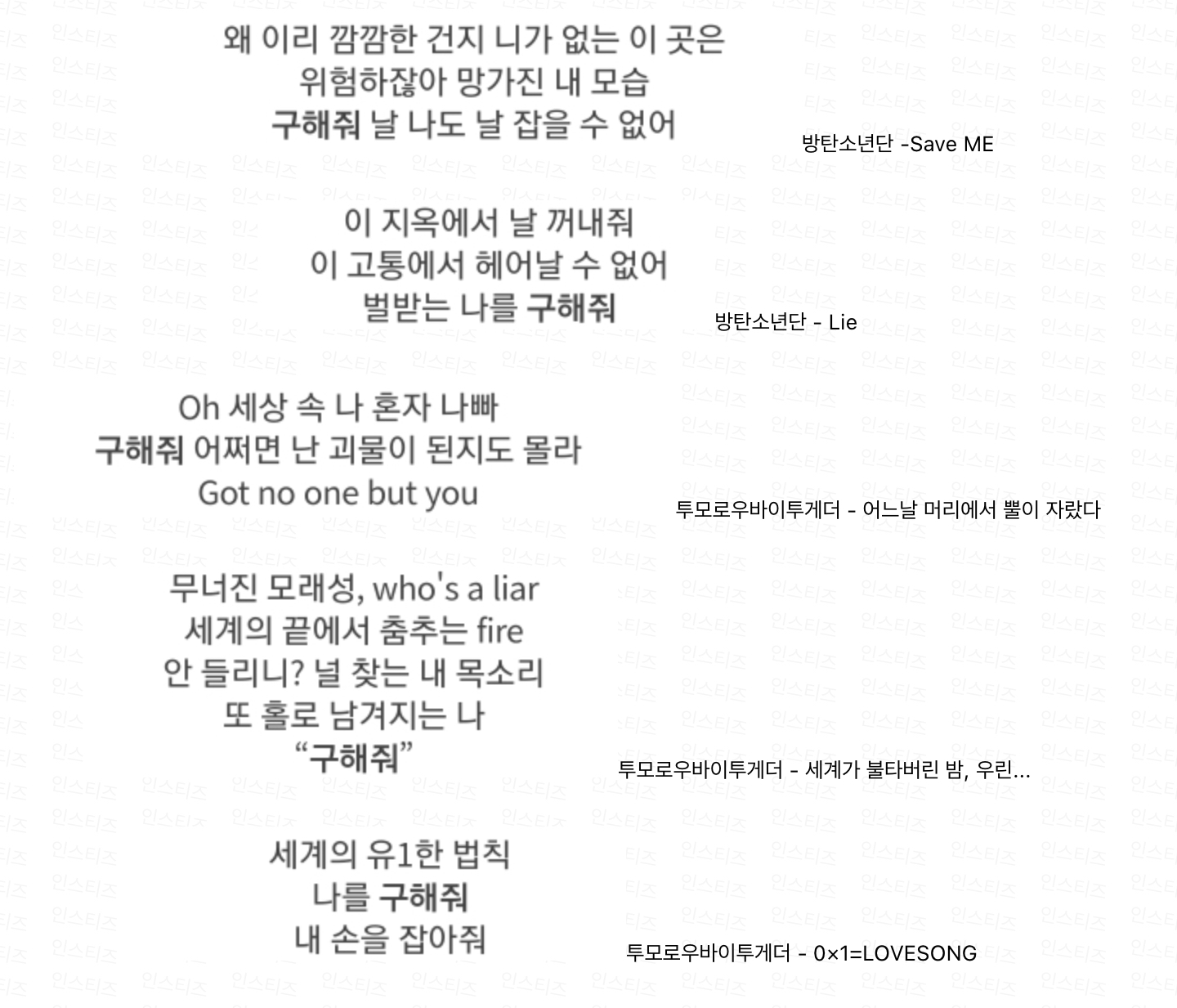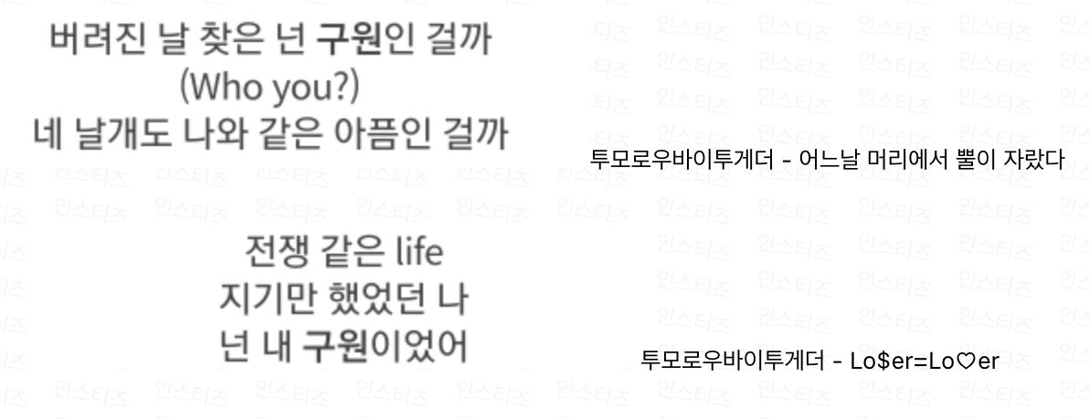 하이브 출신 남자 아이돌의 경우 구원, 기다림에 관련된 노래를 많이 부른다.