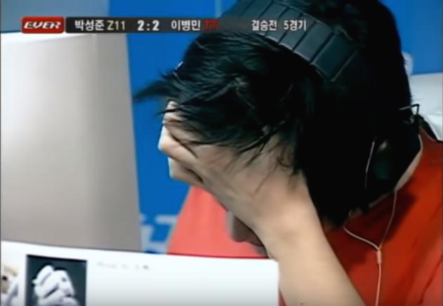 연습을 많이 했었을 것이다. 알고 있는 저그에 대한 방어책을 모두 고려했었을 것이고. 하지만 경험은 연습할 수 없다. 결승 무대위로 올라가 테란에게 3대 0으로 패배했던 귀한 경험이, 우승했던 경험이 이병민은 없었고 그 경험 차이가 급박함을 재촉시켜 패배를 촉진시킨 것이다. 눈을 아무리 막아도 이어폰 너머로 들리는 경기 상황을 누구보다 잘 알고 있었을 것이다. 괴로운듯 몸을 비틀며 울음을 참으려고 입을 틀어막지만 이미 끝났다.