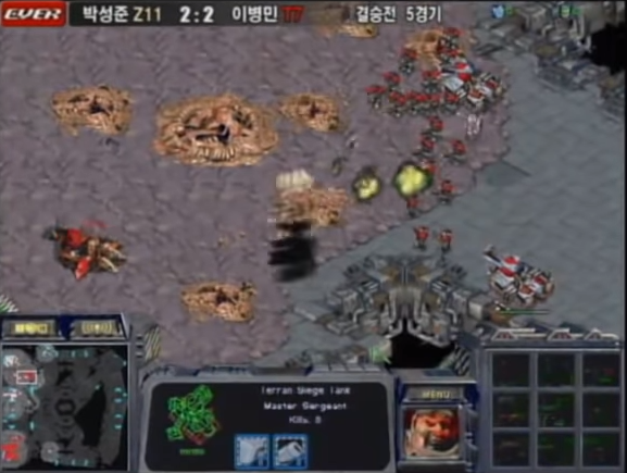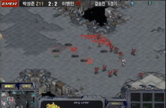 그때 당시에 뮤탈 뭉치기와 짤짤이라고 불리는 공격 후 내빼는 컨트롤이 일반적으로 사용되지 않았다. 그러나 유닛을 잃지 않기 위해 머뭇거리는 이병민의 마린을 뮤탈뭉치기와 짤짤이로 공격, 마린 하나하나가 사라지자 박성준 쪽으로 유리하게 돌아갔다. 물론 그 다수의 뮤탈은 새로 나오는 마린으로 인해 제거, 다시한번 마린과 탱크로 공격하는 이병민. 그러나 또다시 뮤탈 컨트롤로 방어되고 박성준은 러커를 준비한다.