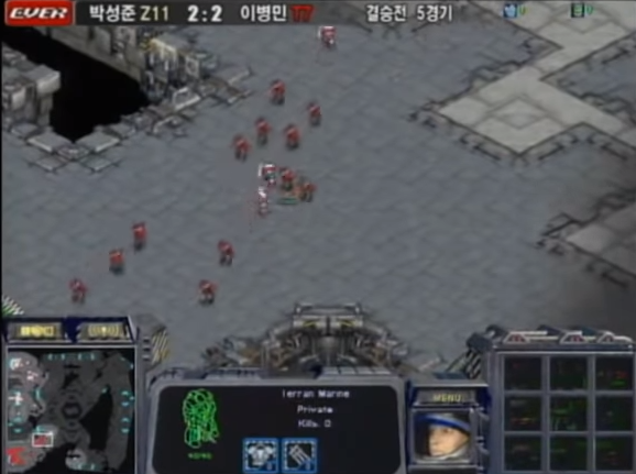 아, 참고로 재미있는 사실이 있는데 박성준의 연습상대인 살아있는 마린은 다들 알다시피 이운재 선수, 이병민의 연습 상대는 뮤탈의 귀공자라는 별명을 가진 1세대 프로게이머 정영주 선수다. 즉 둘은 서로의 주력 유닛을 잘 알고 있었고 그에 대한 대비를 했으며 마린과 뮤탈 유닛 컨트롤로 결승전의 승패가 결전된다는 사실.