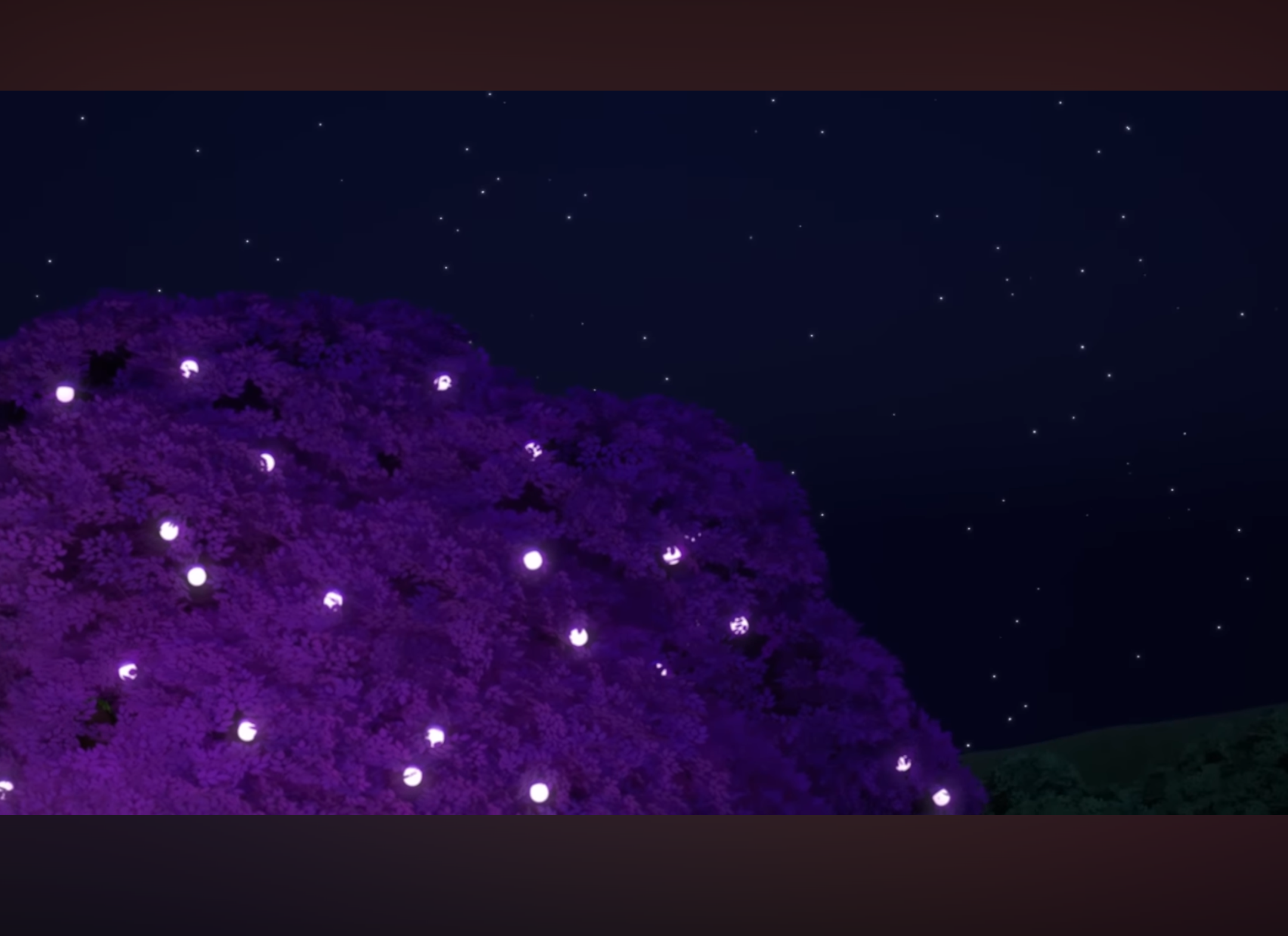저 거대 나무에 보라색 도토리가 10년에 한번 열리고