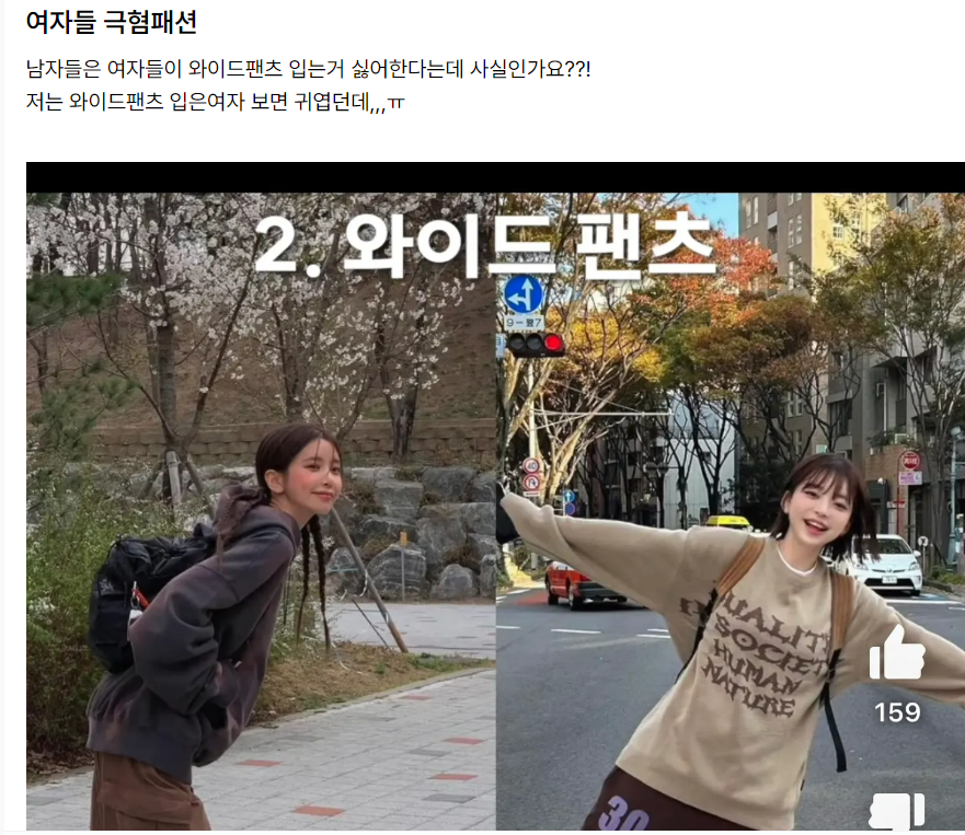 몸매가 잘 보이지 않는 와이드 팬츠는 오히려 극혐한다는 사실을 여자들은 알까 모를까.