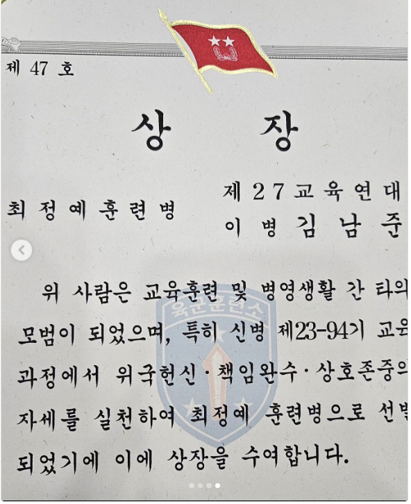 도대체 얼마나 잘났으면 군대에서도 상을 받아 온 거야?