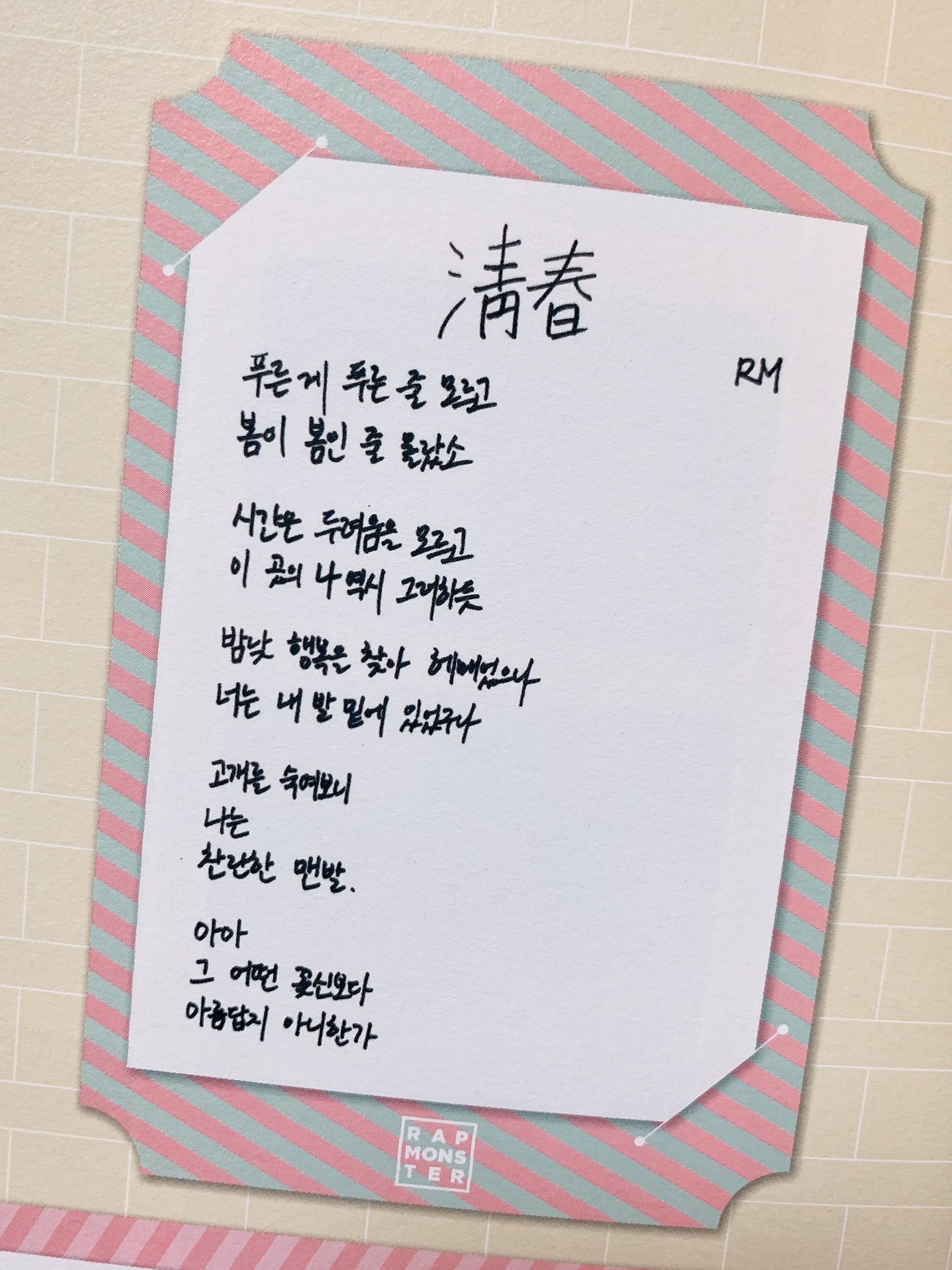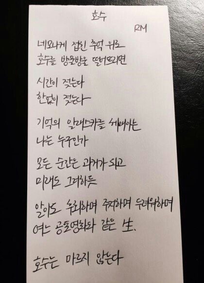 김남준은 어린시절부터 시 쓰는 걸 좋아했데요.