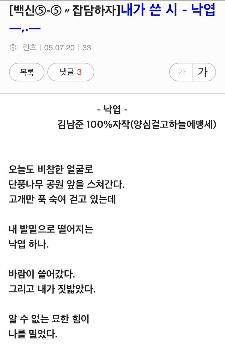 그래서 감정을 담아낸 시 한편 쓰겠음.