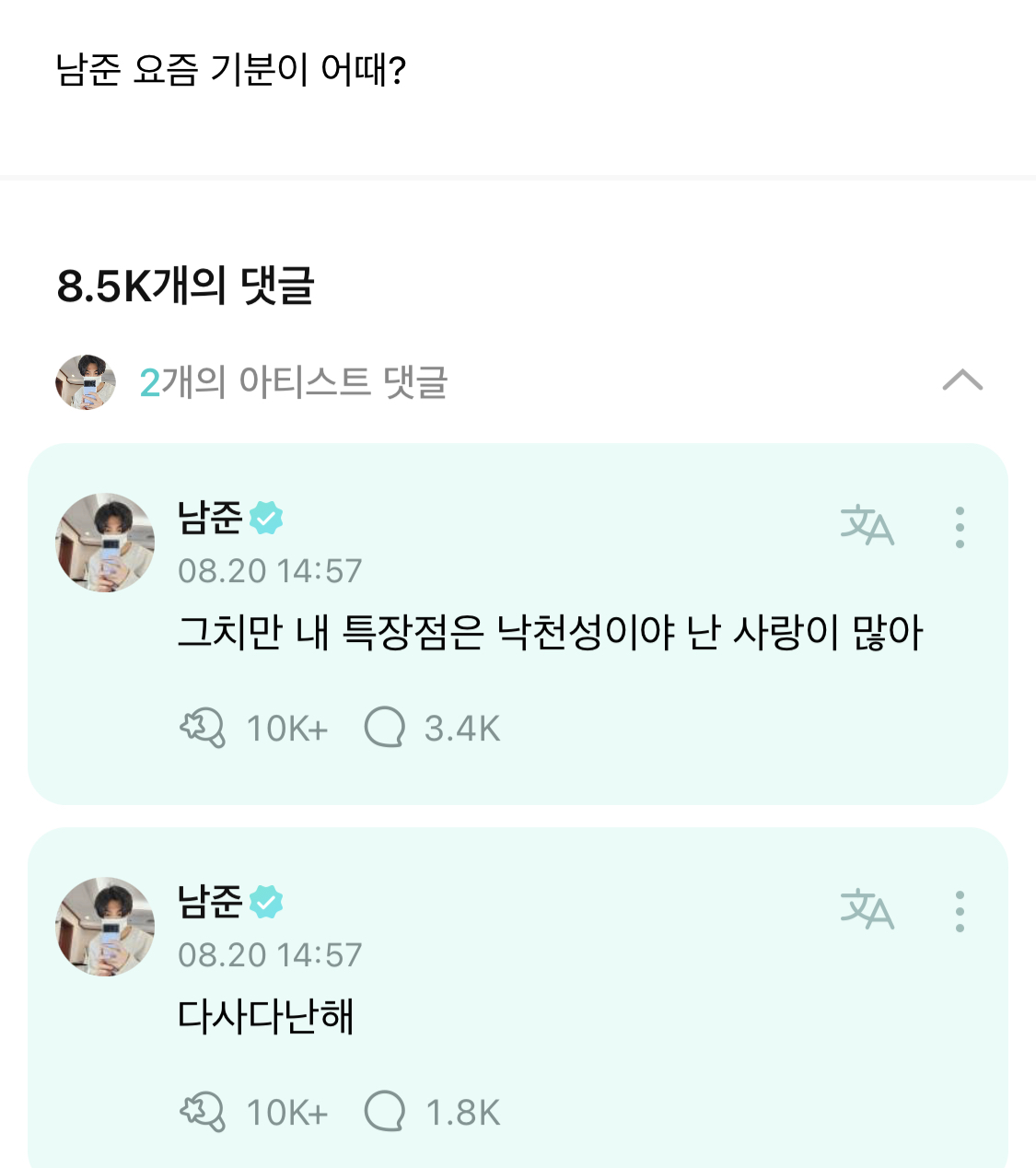 | 남준이 뿌웃 ❤️❤️❤️ (0) | 2024.03.30 |