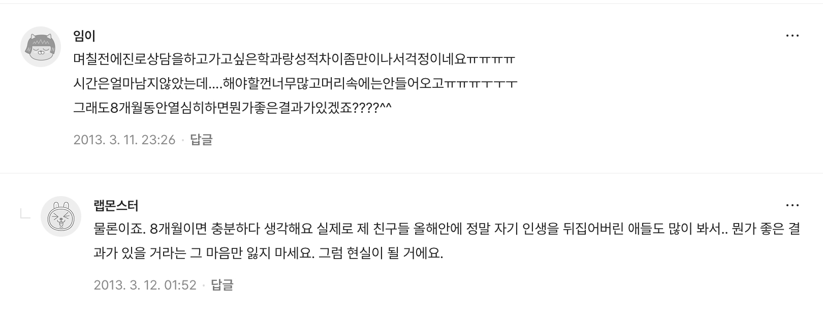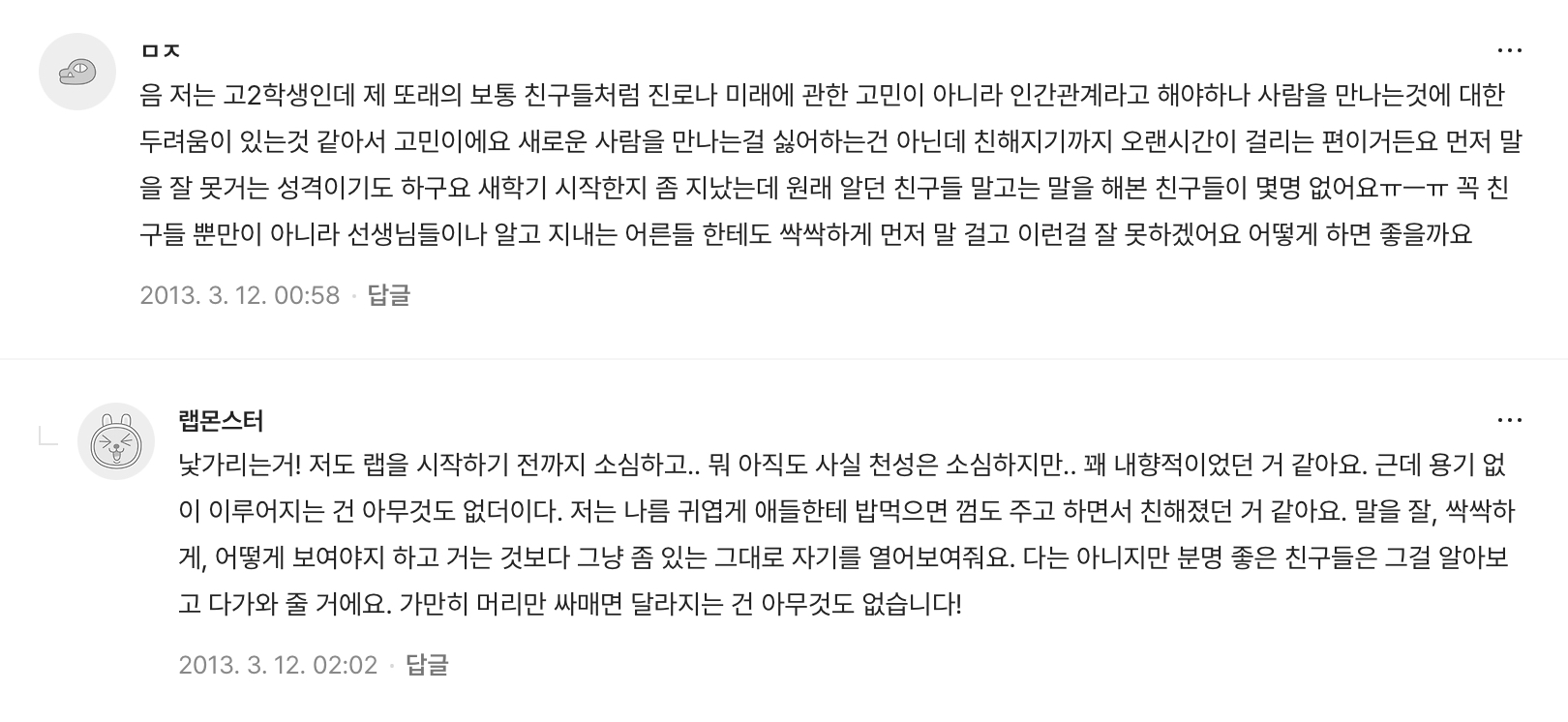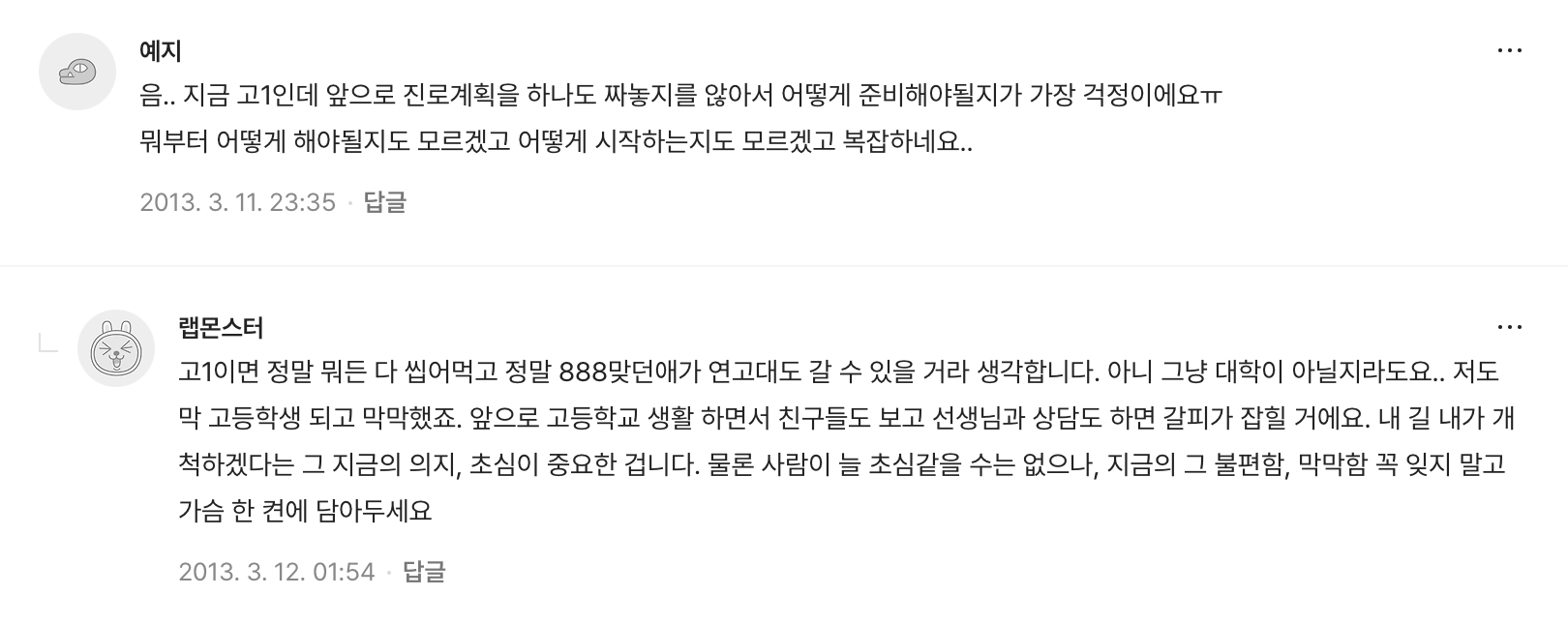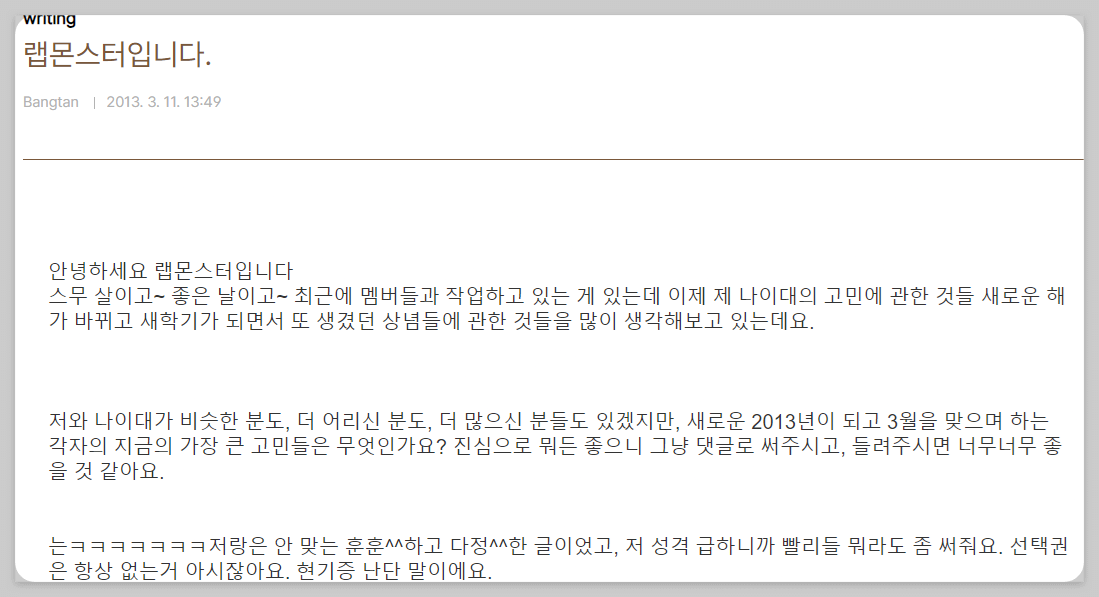 그래서 2013년, 친히 어린양들을 위하여 고민상담을 해주겠다 글을 올리신다.