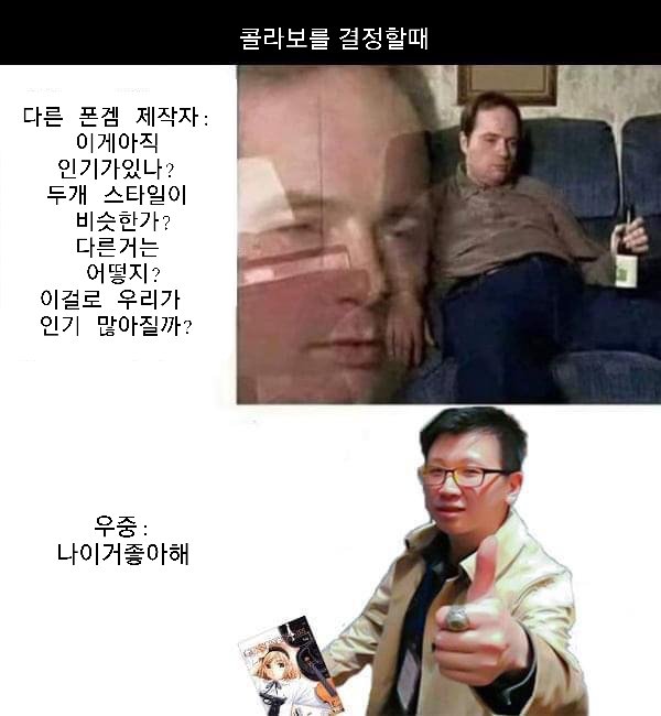 소위 인터넷에 떠돌아 다니는 짤 중에 한쪽은 고민을 무지하게 하고 있는 남자,