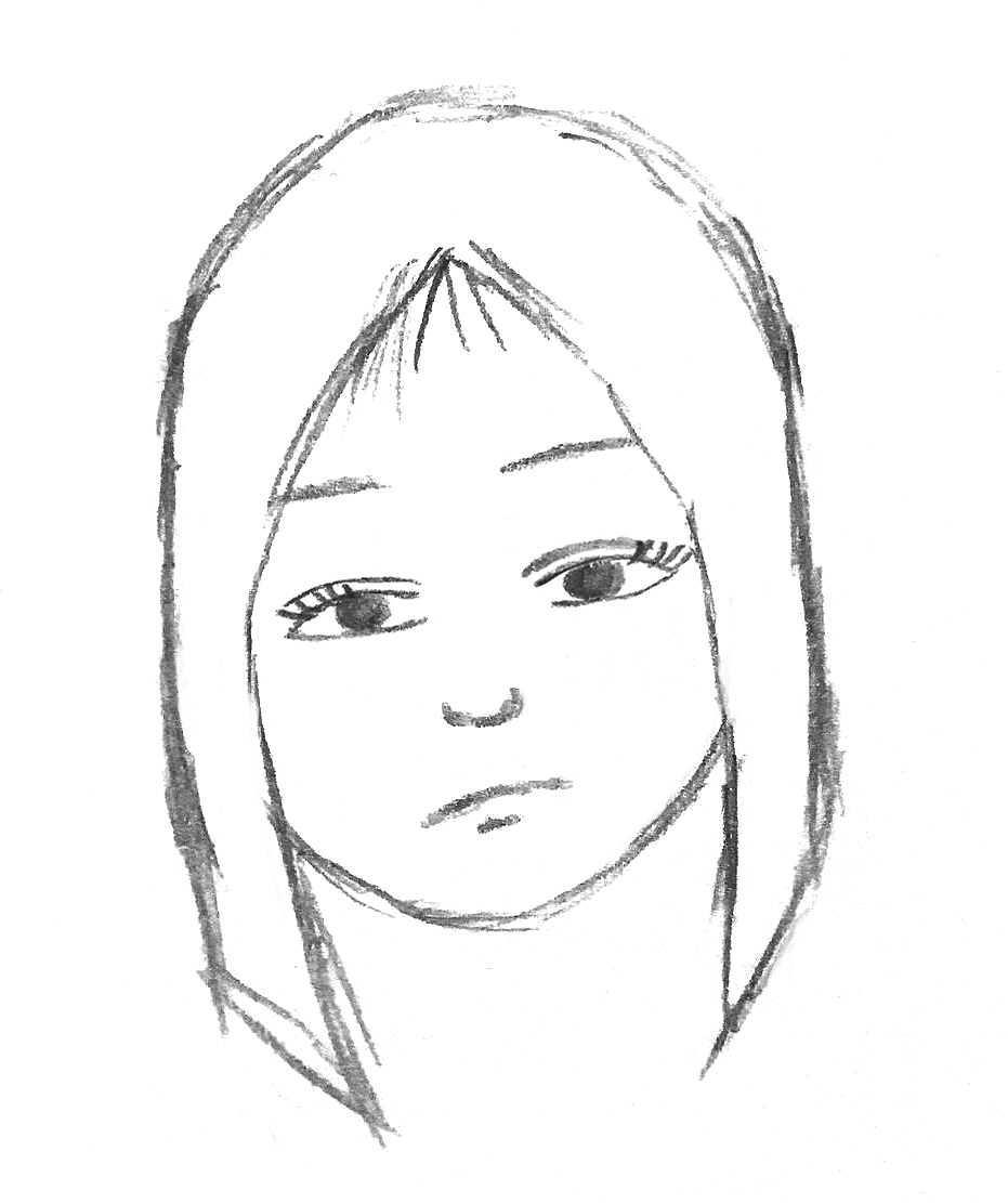 - 앞머리 없는 긴 생머리, 가느다란 머리카락, 혹은 끝에 파마한 머리.