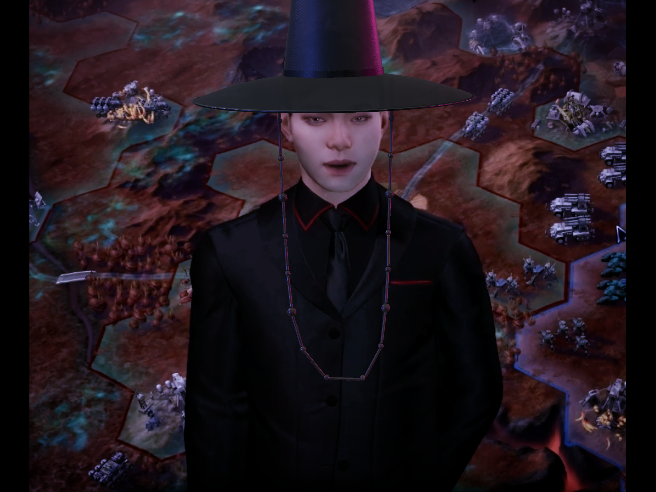 그 옆에 괴상한 포즈로 서 있는 여자도 씹덕 만화 느낌남.