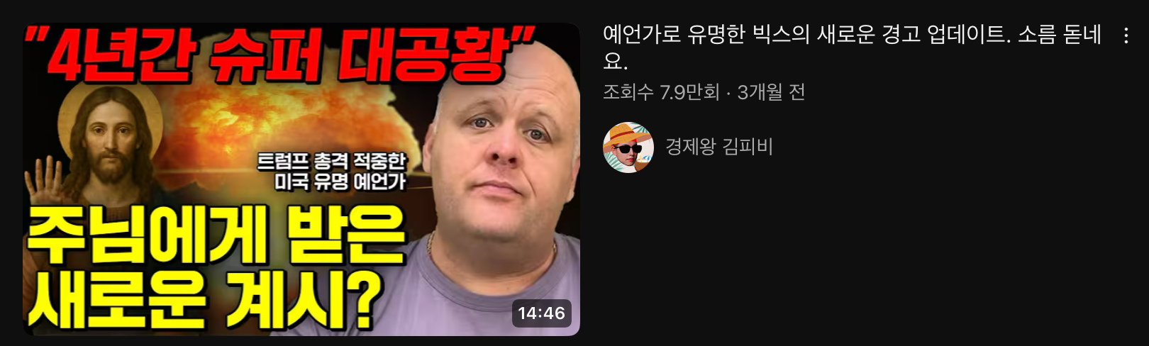 요즘 하도 세상이 흉흉하다보니 유튜브에서 시황을 이유로 자극적인 썸네일을 쓰는 사람이 많더라고.특히 요즘 경제 유튜버가 레드오션이다보니 좀 더 이색적인 방법으로 가는 유튜버가 있으