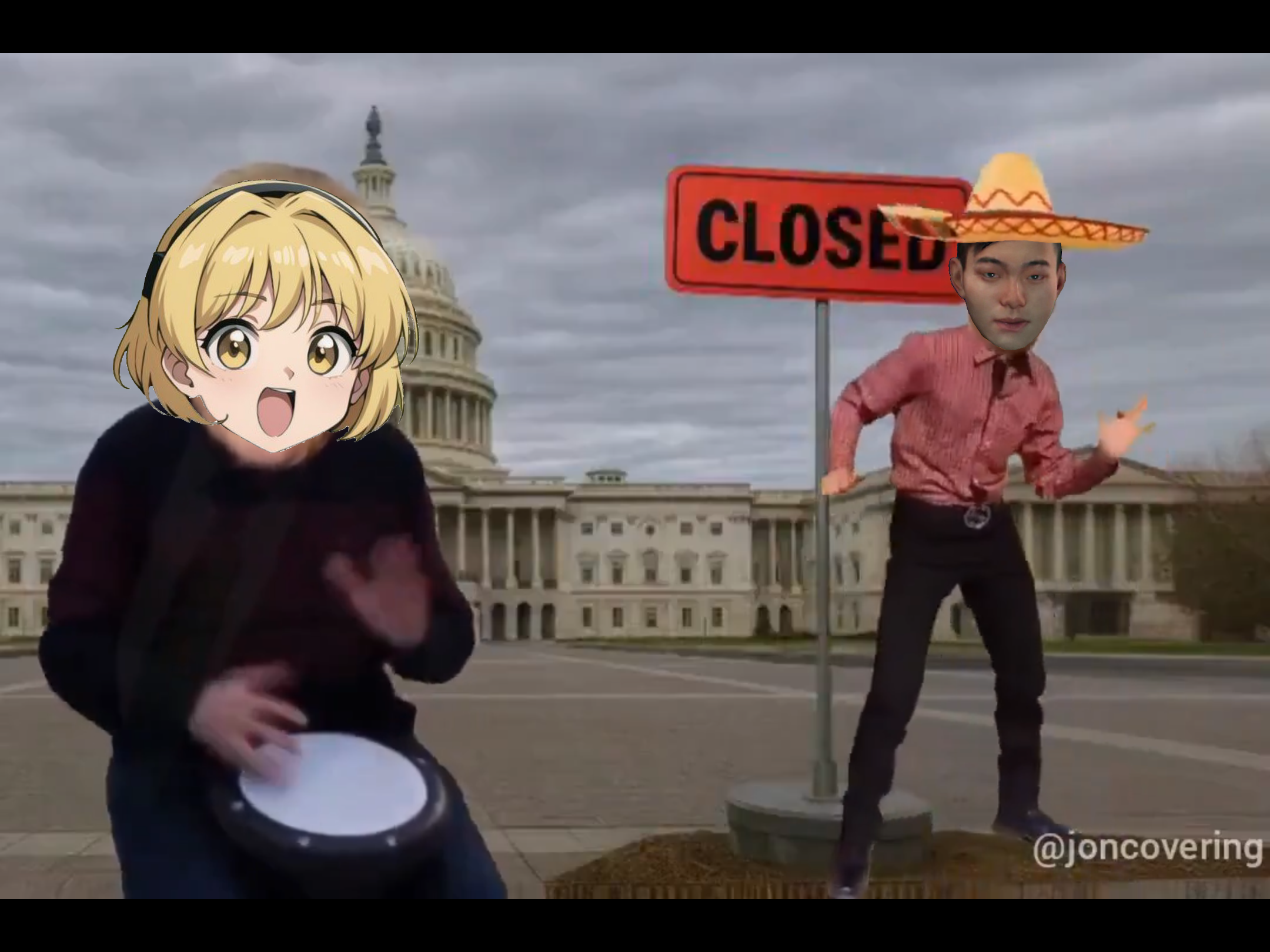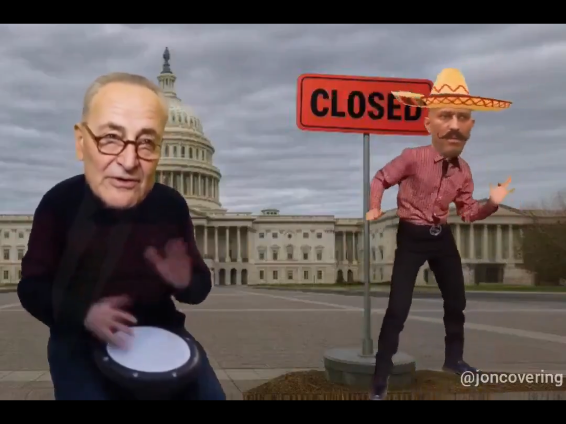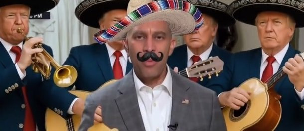 조롱하는 의미로 솜브레로와 콧수염을 단 ai영상을,