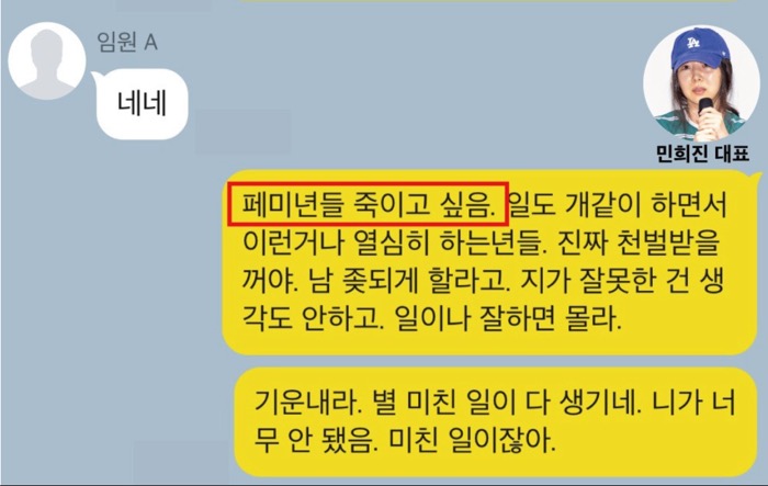 아마 민희진이 기자회견 중 여자 임원으로 많이 힘들다고