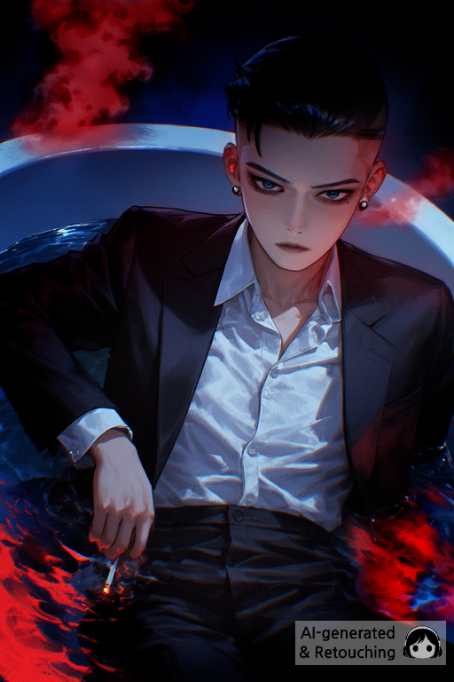 그 다음으로 얼굴은 물론 슈트 윗부분에도 붉은색 조명을 넣어줌.