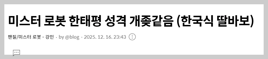 | 미스터로봇 엔젤 만들기 (+ 로봇성애자 강민) (0) | 2025.12.27 |