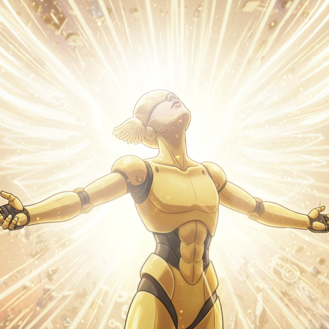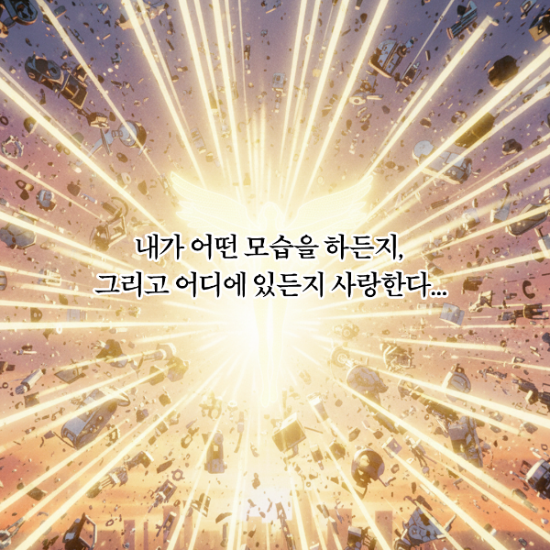 약간 반투명 상태의 황금 날개를 단 로봇 천사로 말이지.