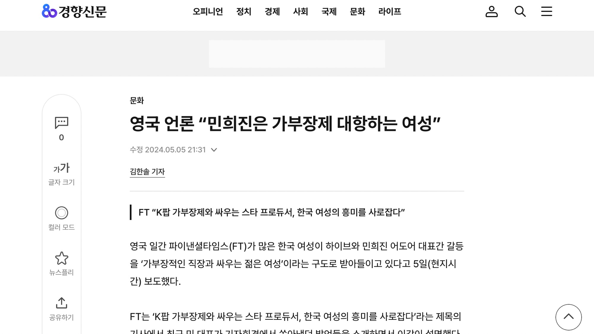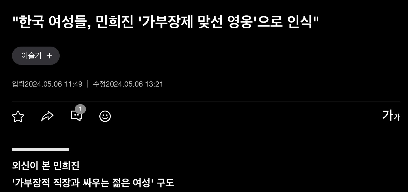 가부장제와 맞서 싸우는 페미여전사 민희진
