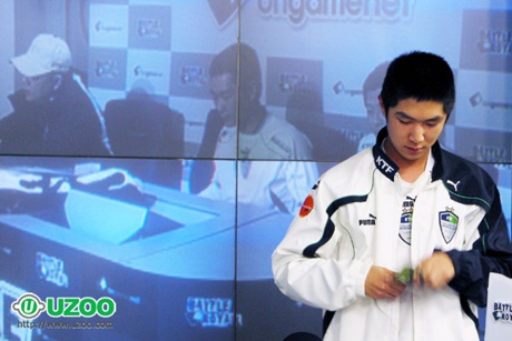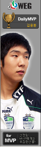 김윤환은 지난 3일 SK텔레콤과의 개막전 3세트에 출전해 전상욱을 꺾고 승리했다. 패배의 위기에 몰려있던 팀을 승리로 이끈 공로를 인정받아 이 날 데일리MVP도 수상했다. [파이터포럼]KTF 김윤환, 프로리그 차기 스타 노린다!(1 |