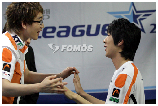 Q. 신인발굴이 부족한 것 아니냐라는 말을 들어왔는데, 이번 리그에는 신예 김윤환 선수의 활약이 눈부시다. 정수영감독 : 김윤환선수의 경우 프로자격증을 따고 팀내 다른 선수들과 꾸준히 연습하면서 실력이 많이 향상된 것 같다. 그중에서 특히 강민선수가 연습을 많이 도와주고 있다. 홍진호 : 신인선수가 잘해주고 있는 것 같다. 팀내에서 주축선수도 꼭 필요하지만 신구조화도 필요하다. 적절한 신구조화가 팀 전체에게도 좋은 일이다. 김정민 : 윤환이 같은 경우 프로리그에서의 경험이 큰 힘이 되는 것 같다. 신인선수들의 경우 프로리그등의 무대를 통해 방송경기에 적응해 나가는 것이 중요하다고 생각한다. ′KTF 매직엔스, 더 이상의 실수는 없다.(2 |