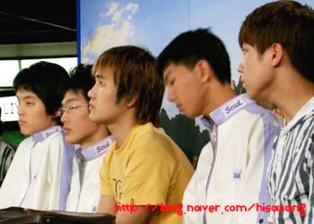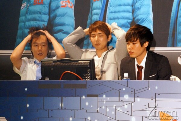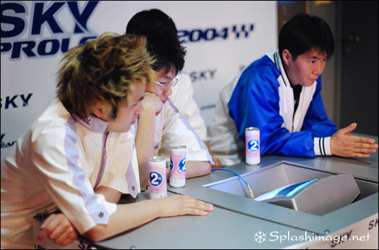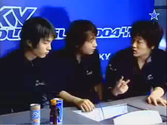 김민기 감독과 박종수 코치가 긴장해서 경기를 보는 2013년 8월의 10년전인 2004 프로리그 2라운드. 그때도 김민기 감독은 긴장하며 경기를 지켜보는데 이유는 팀플로 박상익과 곽동훈이 준수한 성적을 거두고 있었지만 개인전으로는 2승 2패인 한승엽 외에 좋지 않은 상황이기 때문이다.