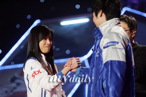 -서지수의 실력에 대해 짧게 평가한다면. ▶서지수 선수는 남성 게이머 못지 않게 손놀림이 빠르다. 연습 때에는 컨트롤도 좋고 대응도 빠른 편인데 방송경기가 적기 때문인지 아직도 무대 경기에서 긴장하는 모습이 보인다. 긴장감을 좀 떨쳐낼 수 있다면 더욱 좋은 경기를 펼칠 수 있을 것으로 본다. [2006-12-01 파이터포럼] [슈퍼파이트] 삼성전자 변은종 인터뷰, "승리하고 나니 홀가분하다"(3 |