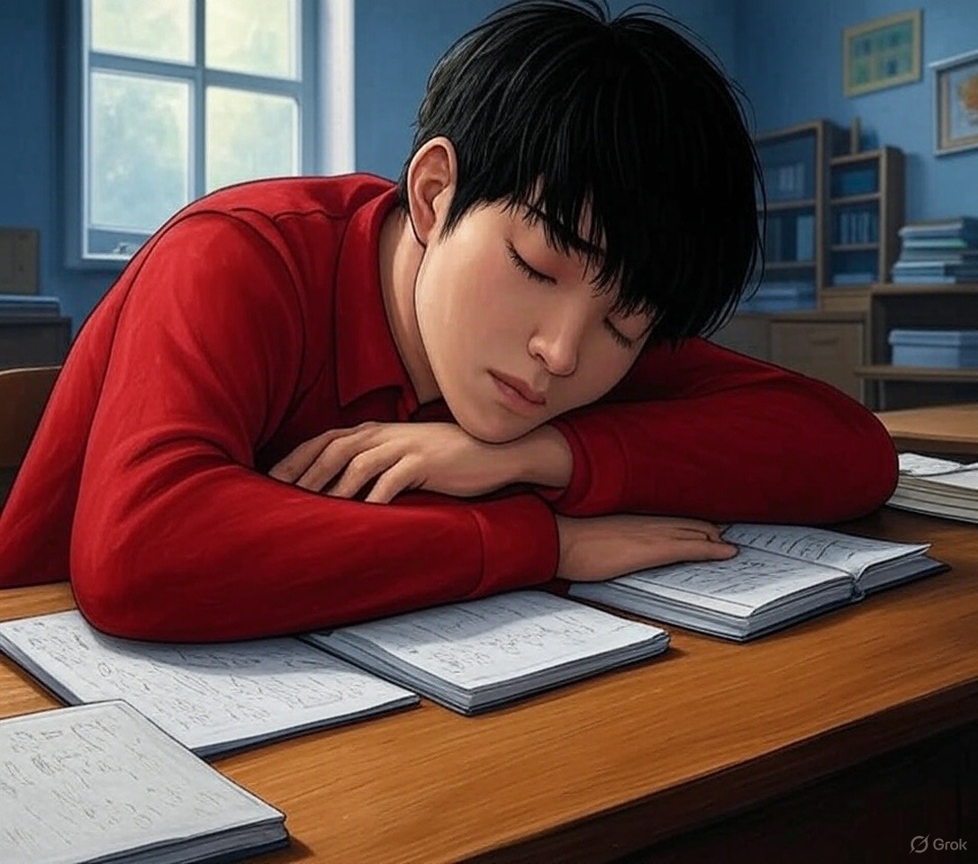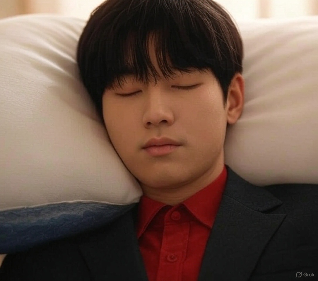 머리 감은 후 헝크러진 헤어스타일로 저렇게 자겠어.